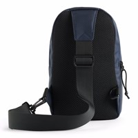 Eine kleine und leichte blaue Umhängetasche mit gepolsterter Rückseite und verstellbarem Gurt für optimalen Tragekomfort. Auf der Vorderseite befindet sich ein praktisches Elastiksystem zur schnellen Aufbewahrung von z. B. einer Jacke oder Flasche. Innen gibt es ein großes Hauptfach sowie ein kleineres Fach mit Reißverschluss – ideal für Tagesausflüge oder den Alltag, wenn man nur das Nötigste mitnehmen möchte. Die Maße der Tasche sind 28 x 16,5 x 8 cm.
