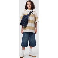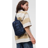 Eine kleine und leichte blaue Umhängetasche mit gepolsterter Rückseite und verstellbarem Gurt für optimalen Tragekomfort. Auf der Vorderseite befindet sich ein praktisches Elastiksystem zur schnellen Aufbewahrung von z. B. einer Jacke oder Flasche. Innen gibt es ein großes Hauptfach sowie ein kleineres Fach mit Reißverschluss – ideal für Tagesausflüge oder den Alltag, wenn man nur das Nötigste mitnehmen möchte. Die Maße der Tasche sind 28 x 16,5 x 8 cm.