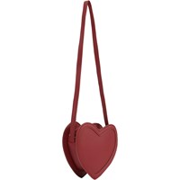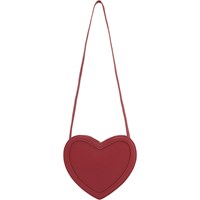 Rote herzförmige Umhängetasche. Die Tasche hat einen verstellbaren Schultergurt.