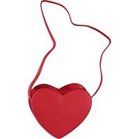 Rote Umhängetasche in Herzform. Die Tasche hat einen verstellbaren Schultergurt.