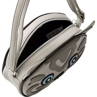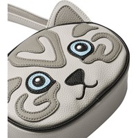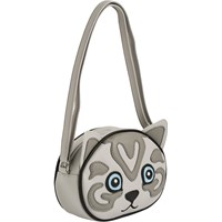 Graue Katzentasche mit Reißverschluss und verstellbarem Schultergurt. Sie ist lustig und praktisch für den täglichen Gebrauch.