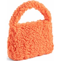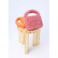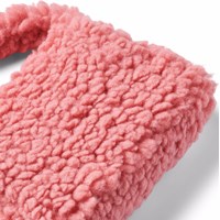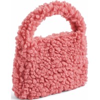 Pinkfarbene Tasche aus flauschigem Teddyfleece. Der Beutel misst 24 cm in der Breite und 18 cm in der Höhe in der Mitte ohne Riemen. Der Beutel hat ein passendes Innenfutter und eine kleine Tasche.