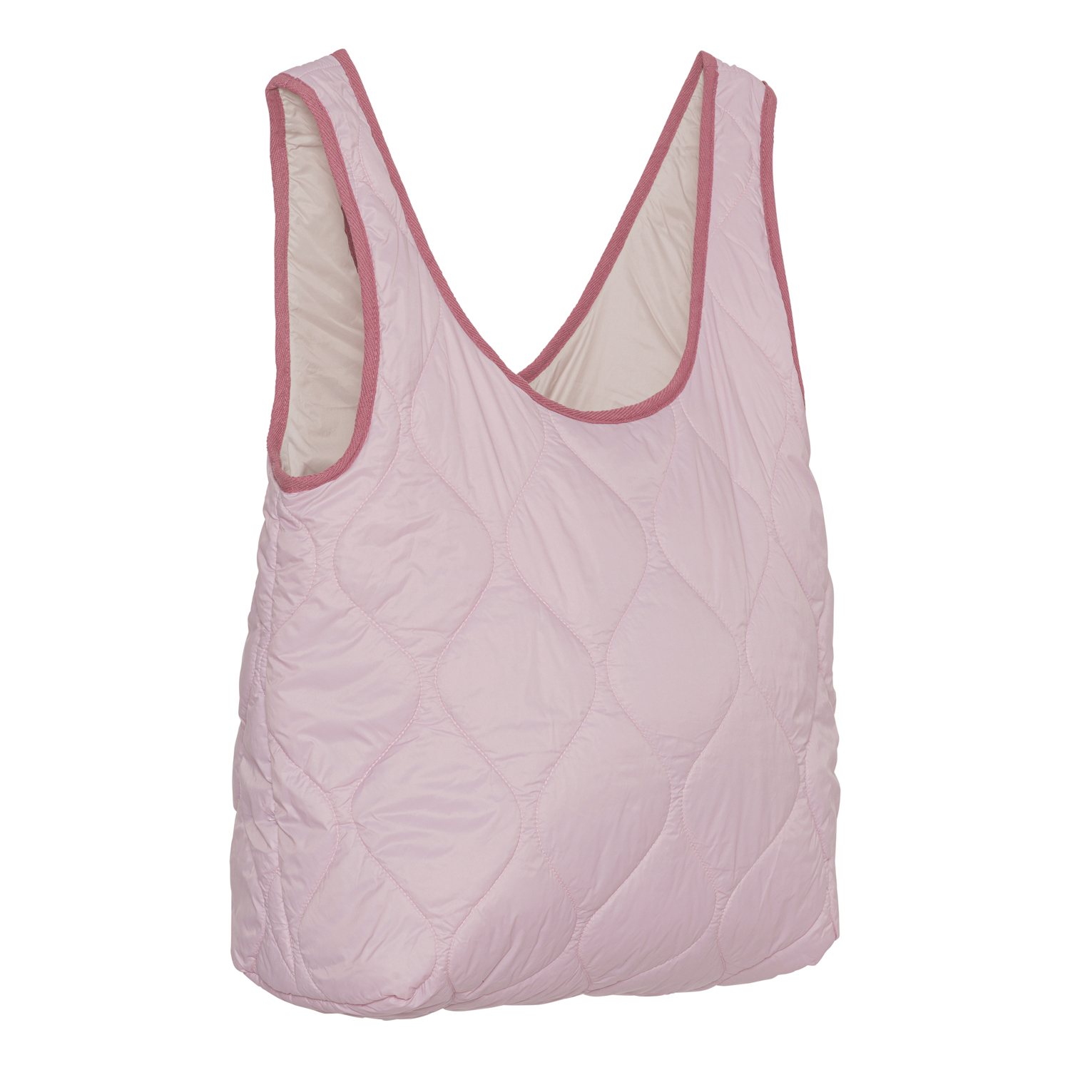 Eine gesteppte Tasche in Pink mit pinker Einfassung an den offenen Kanten und pinkem Futter.