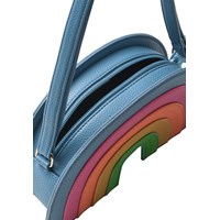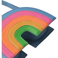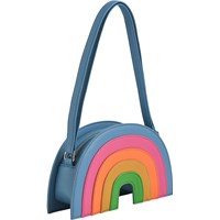 Mehrfarbige Regenbogentasche mit Reißverschluss und verstellbarem Schultergurt. Sie ist praktisch und auffällig.