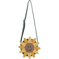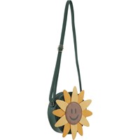 Umhängetasche in Grün mit süßem Motiv einer Sonnenblume auf der Vorderseite. Die Tasche hat einen verstellbaren Schultergurt.