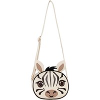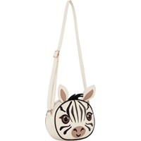 Schwarze und weiße Tasche mit verstellbarem Schultergurt und niedlichem Zebra-Motiv auf der Vorderseite.