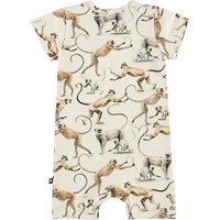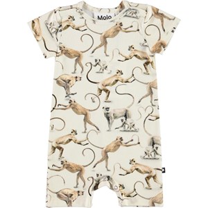 Felton ist ein cremefarbener Anzug mit einem Aufdruck von Affen, die sich an den Schwänzen halten. Findest du das Herz? Der Anzug hat kurze Ärmel und Beine. Druckknöpfe am Hals und zwischen den Beinen erleichtern das An- und Ausziehen.