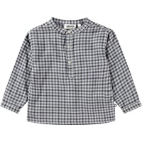 Kariertes Hemd für die Kleinen aus weicher Öko-Baumwolle. Das Hemd hat einen Mandarin-Kragen und eine Knopfleiste mit drei Knöpfen. Es hat eine lockere Passform, die es bequem zu tragen und einfach anzuziehen macht. Kombinieren Sie das Hemd mit passenden Hosen für ein komplettes und bequemes Set.