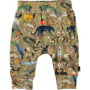 Sammy ist eine hellbraune Babyhose mit einem fantastischen und detaillierten Druck von surrealen Tieren und Pflanzen. Kombinieren Sie mit passendem Oberteil. Die Hose hat einen breiten Gummizug an Taille und Beinabschluss, sowie sichtbare Steppnähte vorn, die der Hose eine Jogginghosen-Optik verleihen.