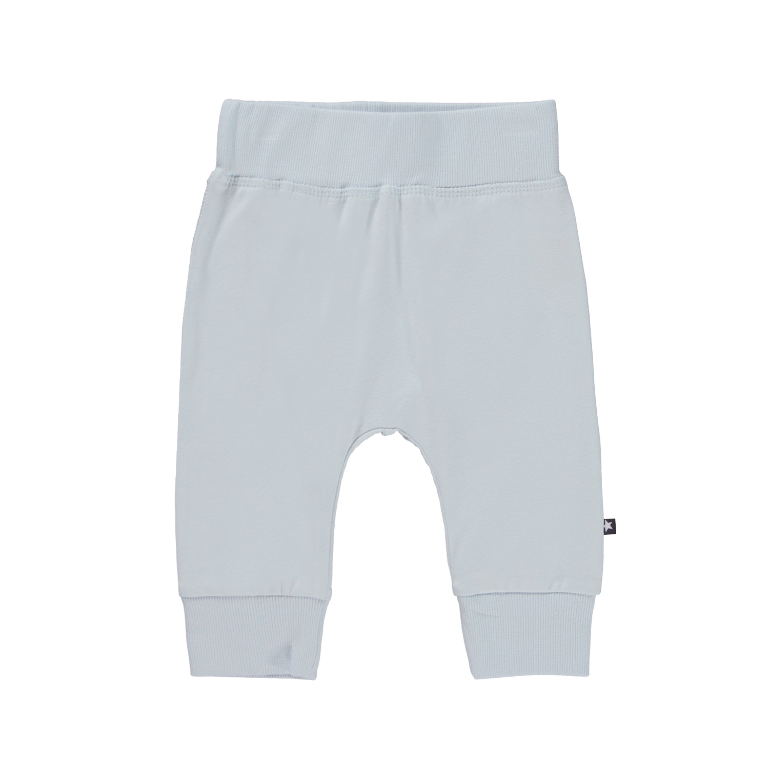 Sammy ist eine eisblaue Babyhose aus 100 % Öko-Baumwolljersey. Die Hose hat breiten elastischen Ripp an der Taille und am Beinabschluss, die für eine bequeme Passform sorgt.