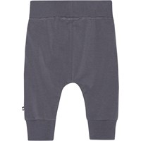 Graue Babyhose für die Kleinsten aus Öko-Baumwolljersey. Die Hose hat breiten elastischen Ripp an der Taille und am Beinende sowie sichtbare Nähte vorne, die der Hose einen Jogginghosen-Look verleihen. Die Hose ist weich zu tragen und bietet viel Bewegungsfreiheit.