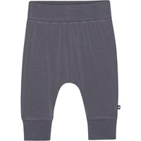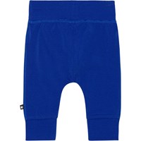 Dunkelblaue Hose für die Kleinen aus Öko-Baumwolljersey. Die Hose hat breiten elastischen Ripp an der Taille und am Beinende sowie sichtbare Nähte vorne, die der Hose einen Jogginghosen-Look verleihen. Die Hose ist weich zu tragen und bietet viel Bewegungsfreiheit.