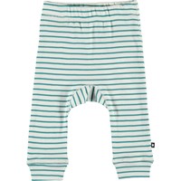 Seb ist eine grün gestreifte Babyhose. Die Hose hat eine elastische Taille, die für eine bequeme Passform sorgt.