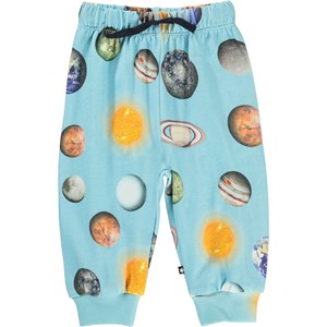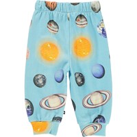 Simeon ist eine hellblaue Baby-Jogginghose mit Planetenaufdruck. Die Hose hat einen elastischen Bund mit Kordelzug.
