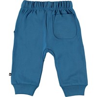Simme ist eine weiche und bequeme Babyhose in Blau mit Smiley-Print. Die Hose hat Bindeband in der Taille und Taschen an den Seiten.