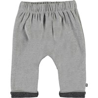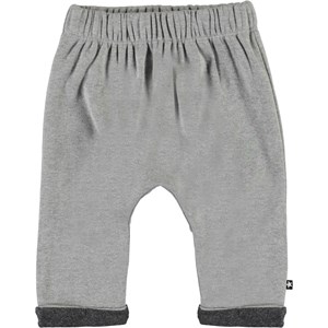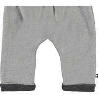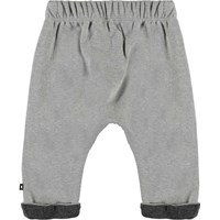 Soyo ist eine graue Baby-Jogginghose mit elastischer Taille und hochgekrempelten Beinen. Die Hose hat guten Raum.