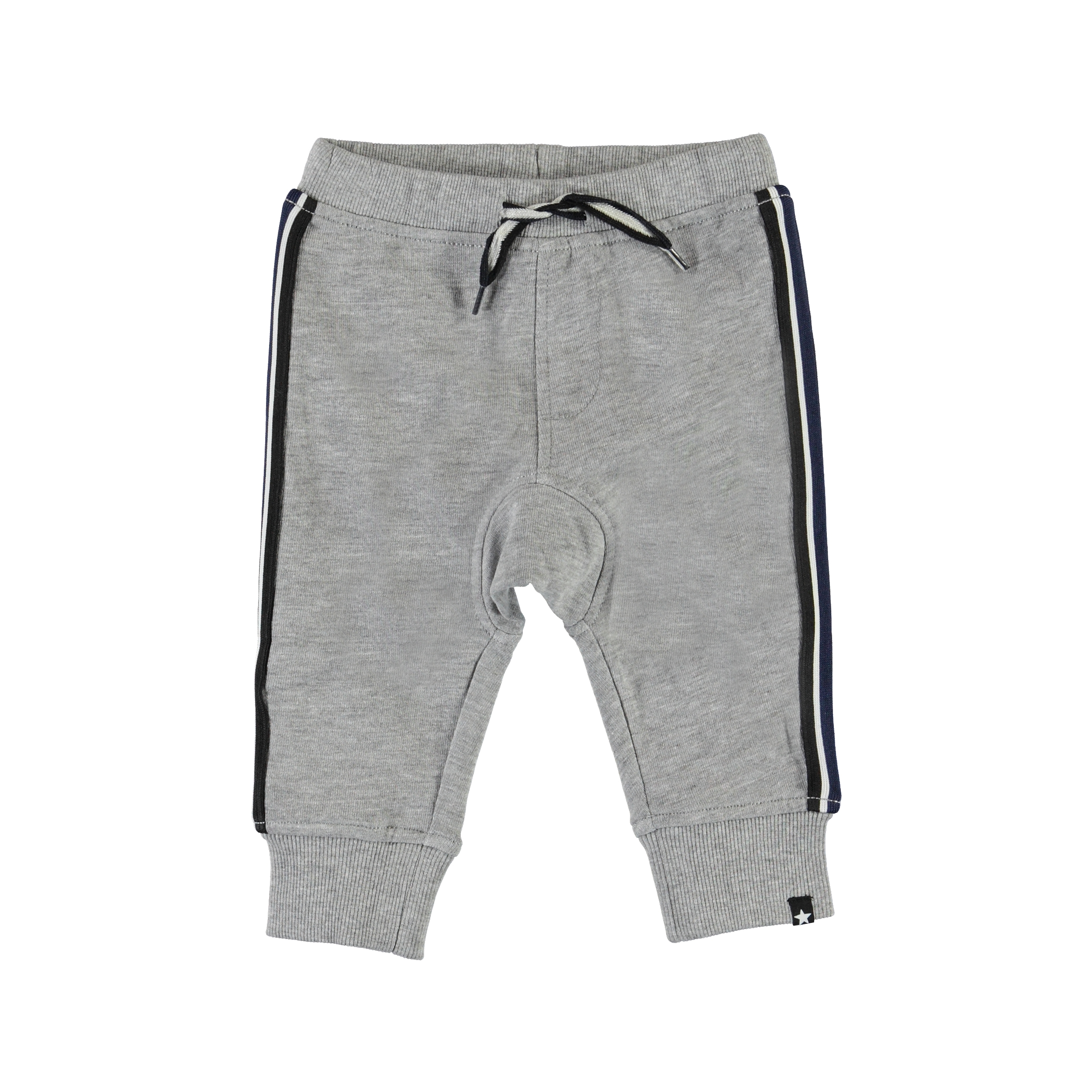 Stan ist eine lockere graue Baby-Jogginghose mit bequemer Passform und einer elastischen Taille mit gestreiften Bindeband. Stan eignet sich perfekt als Tüllhose und hat eine weiche, gebürstete Innenseite sowie breiten Ripp an den Knöcheln.