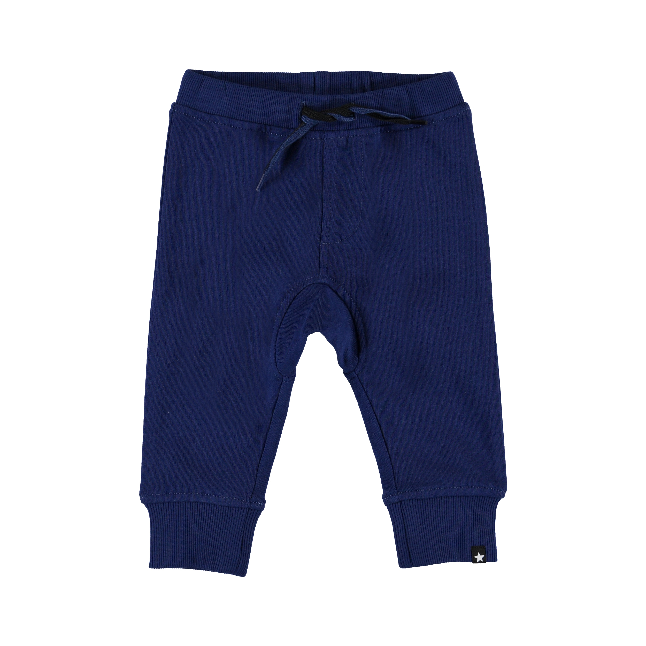 Stan ist eine lockere blaue Baby-Jogginghose mit bequemer Passform und einer elastischen Taille mit gestreifter Bindeband. Stan eignet sich perfekt als Tüllhose und hat eine weiche, gebürstete Innenseite sowie breiten Ripp an den Knöcheln.