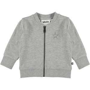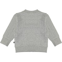 Derek ist ein graues Baby-Sweatshirt mit einem Reißverschluss vorne. Derek hat eine weiche Innenseite sowie einen gestickten Stern auf der Brust.