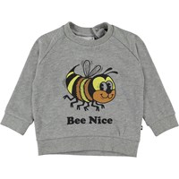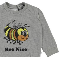 Disco ist ein Baby-Sweatshirt in Grau mit einem Bienendruck und dem Text 'Bee nice'. Das Sweatshirt ist im Nacken zugeknöpft.