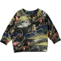 Elmo ist eine Babybluse mit Druck von Tieren aus der Zukunft. Elmo hat Raglanärmel und einen runden Halsausschnitt.