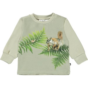 Eloy ist ein hellgrünes Babyshirt mit einem Aufdruck eines lilla Eichhörnchens auf der Vorderseite. Eloy hat einen Knopfverschluss an einer Schulter, was das An- und Ausziehen erleichtert.
