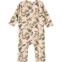 Fenez ist ein Babyanzug mit langen Beinen und Ärmeln. Der Anzug ist in Rosa mit einem Aufdruck von Brombeerranken. Druckknöpfe an Hals und Beinen erleichtern das An- und Ausziehen des Bodys.