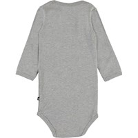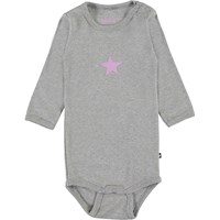 Foss ist ein langärmeliger Baby-Body in Grau mit einem Stern auf der Vorderseite. Druckknöpfe am Hals und zwischen den Beinen erleichtern das An- und Ausziehen Ihres Körpers.