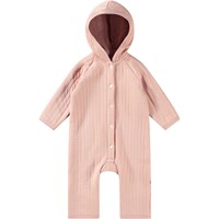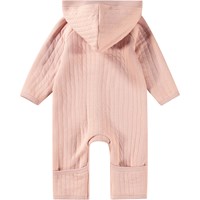 Staubrosa Overall aus weich gepolsterter Baumwolle mit lockerer Passform und sehr bequem für das Baby zu tragen. Er hat eine Kapuze, die zusätzlichen Schutz vor Kälte und Wind bietet. Gerippte Bündchen an den Ärmeln und Beinen sorgen für eine gute Passform und verhindern, dass der Overall hochrutscht. Auf der Vorderseite befinden sich perlweiße Knöpfe, die das An- und Ausziehen erleichtern. Dieser Overall bietet viel Bewegungsfreiheit und kann alleine oder mit anderen Kleidungsstücken darunter getragen werden.