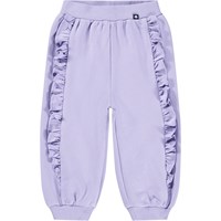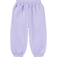 Hellviolette Jogginghose für die Kleinen aus Öko-Baumwolle. Die Jogginghose hat Rüschen entlang der Beine und elastische Rippbündchen an Taille und Knöcheln. Kombinieren Sie sie mit dem passenden Sweatshirt.