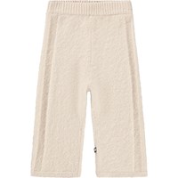Beige Hosen für die Kleinen aus Wolle. Die Hosen haben eine weite Passform mit weiten Beinen und fein gewebtem Einsatz entlang der Beine. Die Hosen haben einen elastischen Bund. Kombinieren Sie sie mit der passenden Strickjacke.