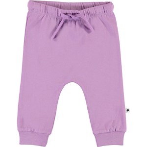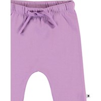 Sille ist eine geräumige Babyhose in Lila. Sille hat eine elastische Taille mit Bindeband und Ripp am Beinende, was für eine bequeme Passform sorgt.
