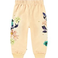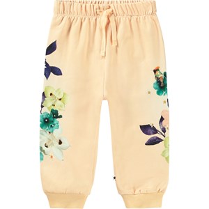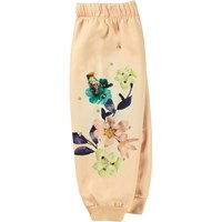 Pfirsichfarbene Jogginghose aus Öko-Baumwolle für die Kleinen. Die Hose hat einen elastischen Bund und eine Kordel, sowie gerippte Bündchen an den Beinen. Sie ist leicht an- und auszuziehen und bietet viel Bewegungsfreiheit. Der Druck zeigt schöne Blumen an den Seiten der Hosenbeine.