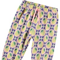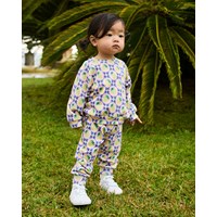 Weiche Hosen aus Öko-Baumwolle für die Kleinen. Die Hosen haben einen elastischen Bund mit Kordelzug und gerippte Bündchen an den Knöcheln. Sie sind leicht an- und auszuziehen und bieten viel Bewegungsfreiheit. Dieser Stil hat eine ungefütterte Innenseite, die sie an heißen Tagen angenehm kühl macht. Die Hosen sind mit einem Druck von lila Blumen und gelben Erdbeeren versehen. Kombinieren Sie sie mit einem passenden Sweatshirt für ein komplettes Outfit.