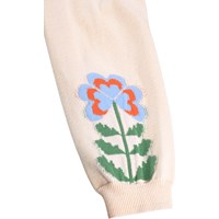 Rosa gestrickte Hosen für die Kleinen aus Bio-Baumwolle mit Blumen. Die Hosen haben Rippbündchen an der Taille und den Knöcheln, die für eine bequeme Passform sorgen.