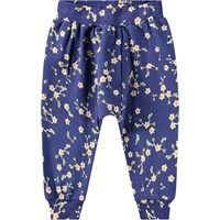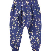 Dunkelblaue Hose mit Allover-Print aus weichem Öko-Baumwolljersey für die Kleinen. Die Hose hat eine lockere Passform und gerippte Bündchen an den Beinen und der Taille, was das An- und Ausziehen erleichtert. Der Print besteht aus kleinen weißen Blumen, die den Sternen am Nachthimmel ähneln.