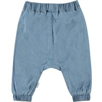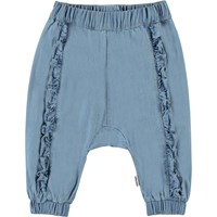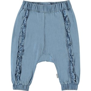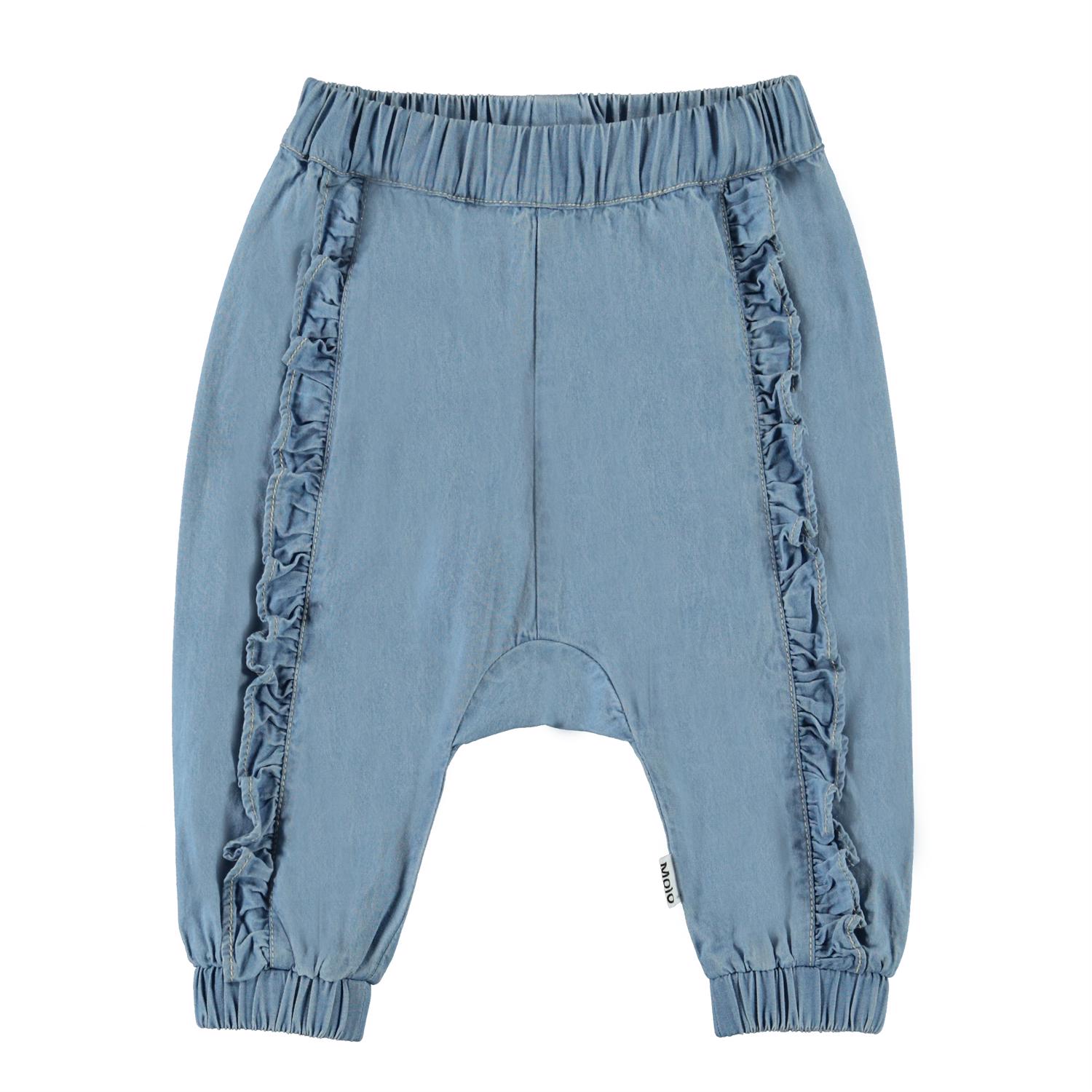 Sophia ist eine hellblaue Jeanshose mit einer geräumigen Passform und Rüschen an der Vorderseite. Die Hose hat eine elastische Taille, die dafür sorgt, dass die Hose gut sitzt.