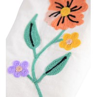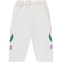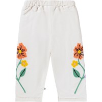 Weiße Hosen für die Kleinen aus weicher Baumwolle. Die Hosen haben eine schöne Stickerei großer Blumen an den Seiten der Beine und einen elastischen Bund. Kombinieren Sie sie mit der passenden Jacke für ein schönes Set.