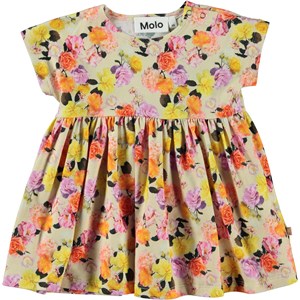 Channi ist ein cremefarbenes und grünes Kurzarm-Babykleid aus 100 % Öko-Baumwolljersey. Das Kleid hat eine lockere Passform, eine hohe Taille und einen luftigen Rock. Oben an der Schulter befinden sich Druckknöpfe, die das An- und Ausziehen des Kleides erleichtern. Channi trägt den Allover-Print Baby Roses, der Sie in allen möglichen Farben durch die Rosen des Gartens führt.
