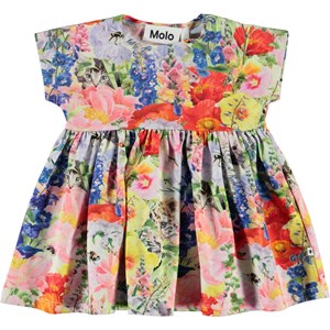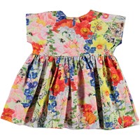 Channi ist ein Baby-Kleid mit Blumen-Druck, wo verschiedene Tiere sich zwischen den Blumen verstecken. Channi hat eine breite Passform und Druckknöpfe auf den Schultern, die das an- und ausziehen einfach machen. Ecocert Greenlife, certifikationsnr. 197496.