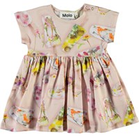 Channi ist ein rosa Babykleid mit einem Druck von Eis. Molo hat selbst diese schönen Blumen zu Eis gefroren, die zu diesem Druck wurden. Channi hat eine breite Passform und Druckknöpfe auf den Schultern die das an- und ausziehen einfach macht. Ecocert Greenlife, certifikationsnr. 197496.
