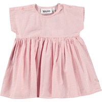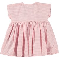 Channi ist ein kurzärmliges Babykleid mit rot-weißen Karos aus 100 % Baumwolle. Das Kleid hat eine lockere Passform, eine hohe Taille und einen luftigen Rock. Oben auf beiden Schultern befinden sich Druckknöpfe, die das An- und Ausziehen des Kleides erleichtern.