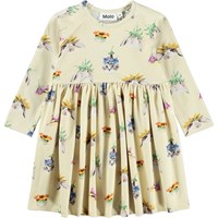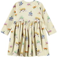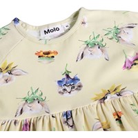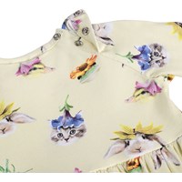 Langärmliges, gelbes Kleid für die Kleinen aus Bio-Baumwolle mit Tiermuster. Das Kleid hat Raglanärmel, einen Rundhalsausschnitt und Druckknöpfe am Rücken. Der Rock ist gerafft für gute Bewegungsfreiheit und eine bequeme Passform.