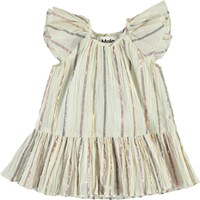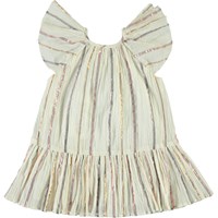 Cindie ist ein Babykleid mit feinen matalischen Streifen. Das Kleid hat kurze Ärmel und einen kleinen Rock.