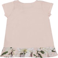 Coletta ist ein rosa Babykleid mit kurzen Ärmeln aus 100% Baumwolljersey. Das Kleid hat einen kleinen Rüschenrock und einen Druckknopfverschluss an einer Schulter, was das An- und Ausziehen des Kleides erleichtert. Das Kleid hat den Aufdruck Flowery Foal, auf dem ein kleines Fohlen mit Schmetterlingsflügeln zwischen großen, weißen Blüten herumfliegt.