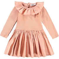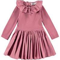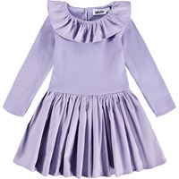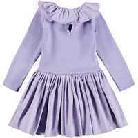 Hellviolettes Popelinekleid für die Kleinen aus Öko-Baumwolle. Das Oberteil ist aus geripptem Jersey mit einem süßen Kragen und der Rock ist aus Popeline. Das Kleid hat einen hübschen Knopfverschluss hinten, um das An- und Ausziehen zu erleichtern.