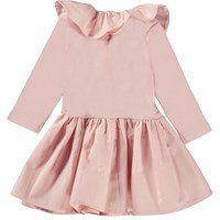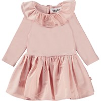 Crystala ist ein rosa langärmliges Babykleid aus 100 % Öko-Baumwolle. Das Kleid hat lange Ärmel, die wie das Oberteil des Kleides selbst aus geripptem Jersey bestehen. Das Kleid hat dort einen süßen runden Kragen, der wie der Rock aus Popeline ist. Crystala hat einen Druckknopfverschluss hinten in der Mitte, was das An- und Ausziehen des Kleides erleichtert.