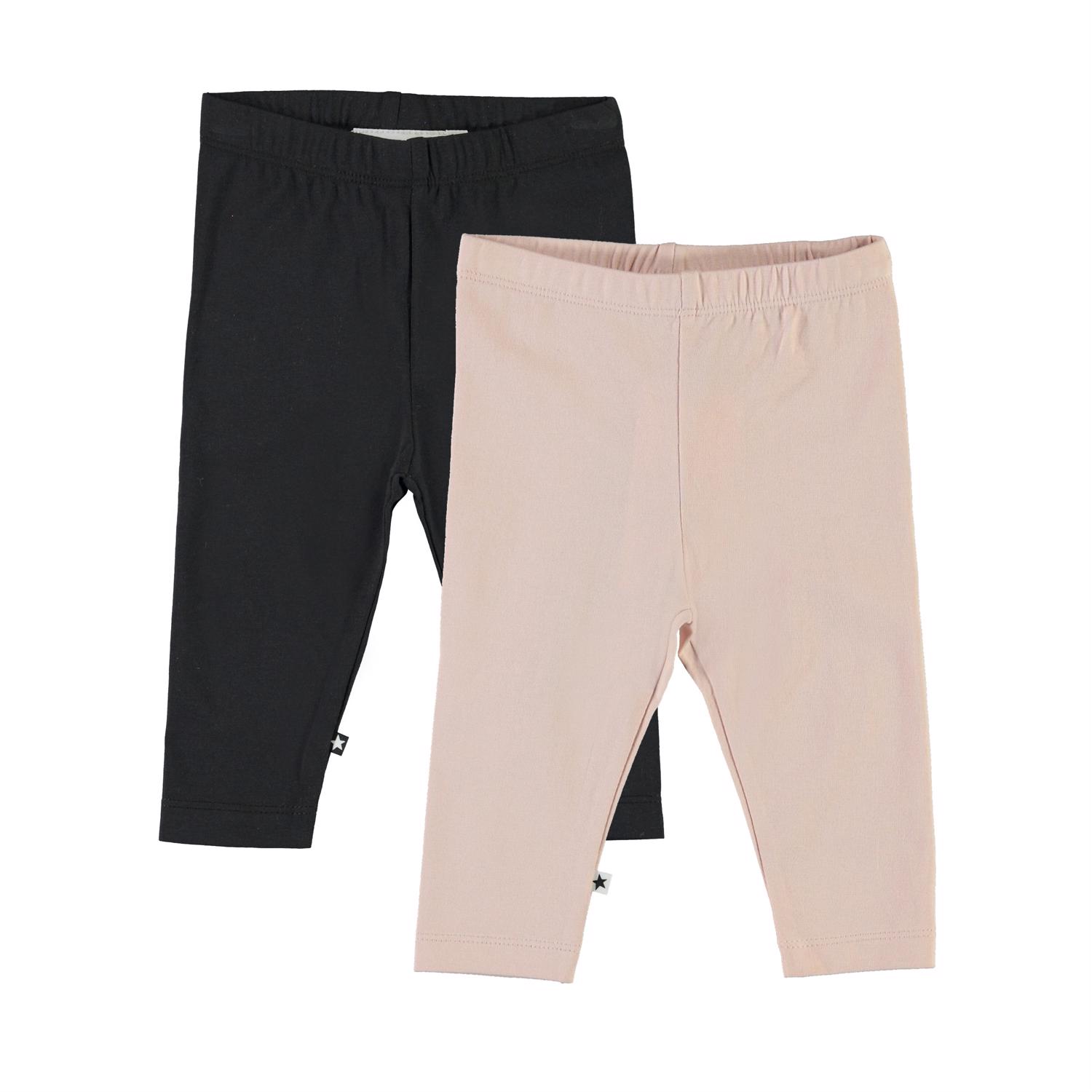 Klassische Baby-Leggings hier in einem 2-Pack mit einem schwarzen und einem rosa Paar. Die elastische Taille und das weiche Material sorgen für eine gute Passform. Ecocert Greenlife, certifikationsnr. 197496.