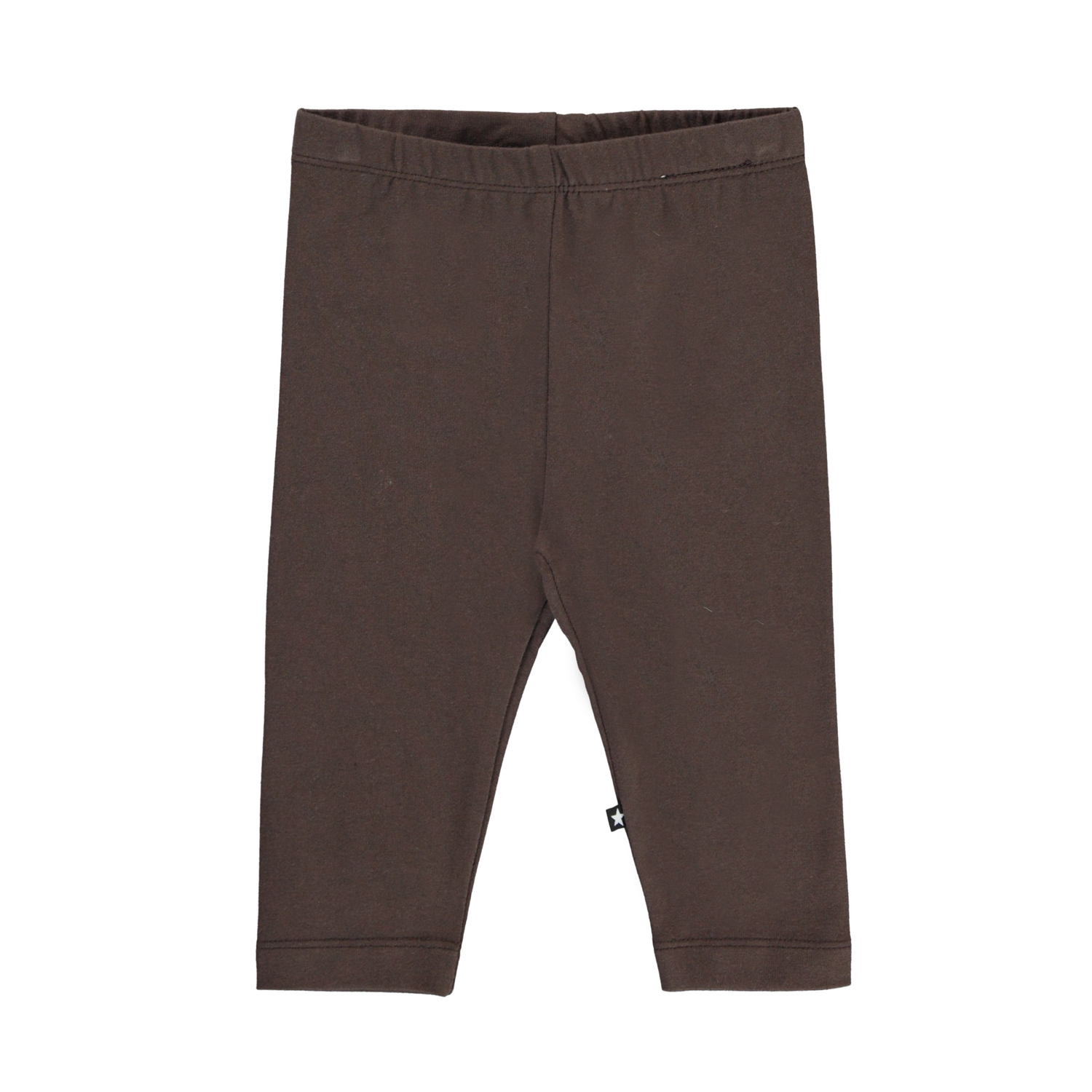 Klassische, braune Baby-Leggings. Der elastische Bund und das weiche Material sorgen für eine gute Passform.