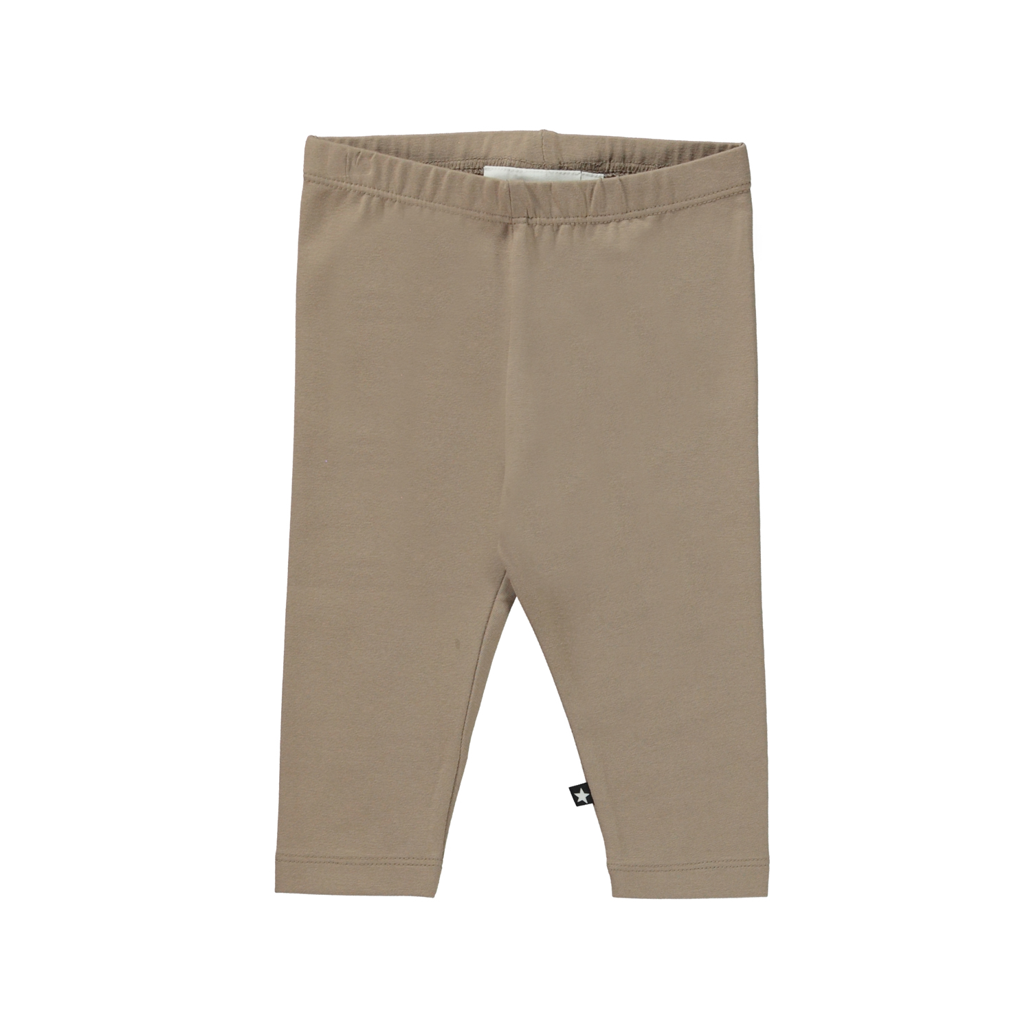 Klassische beige Baby-Leggings. Der elastische Bund und das weiche Material sorgen für eine gute Passform.